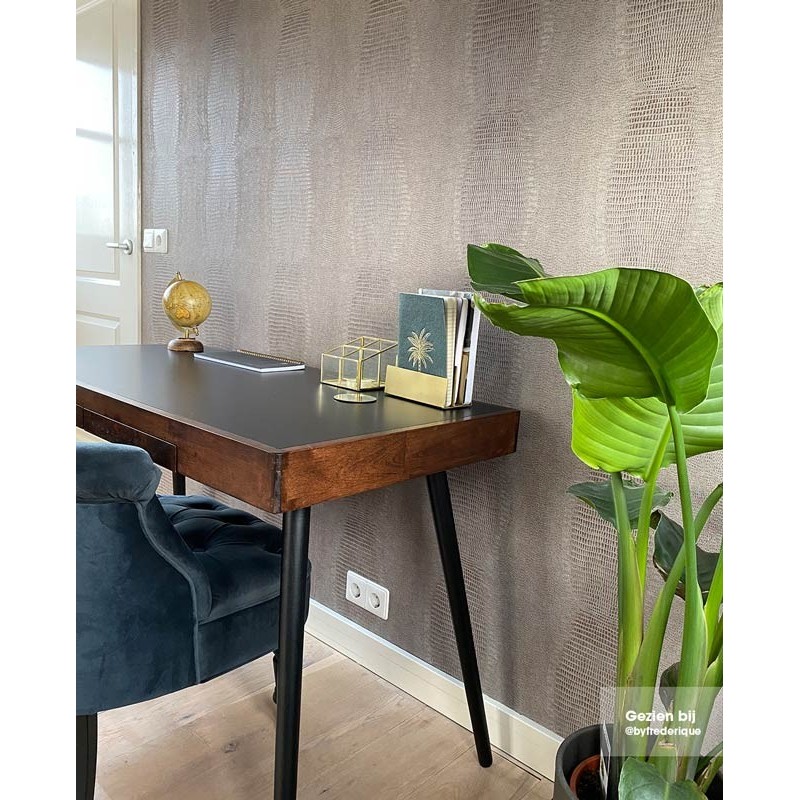 Papel pintado piel cocodrilo beige arena de Eijffinger, colección Skin. Medidas: 52 cm x 10 m. Papel de pared tejido no tejido y lavable.