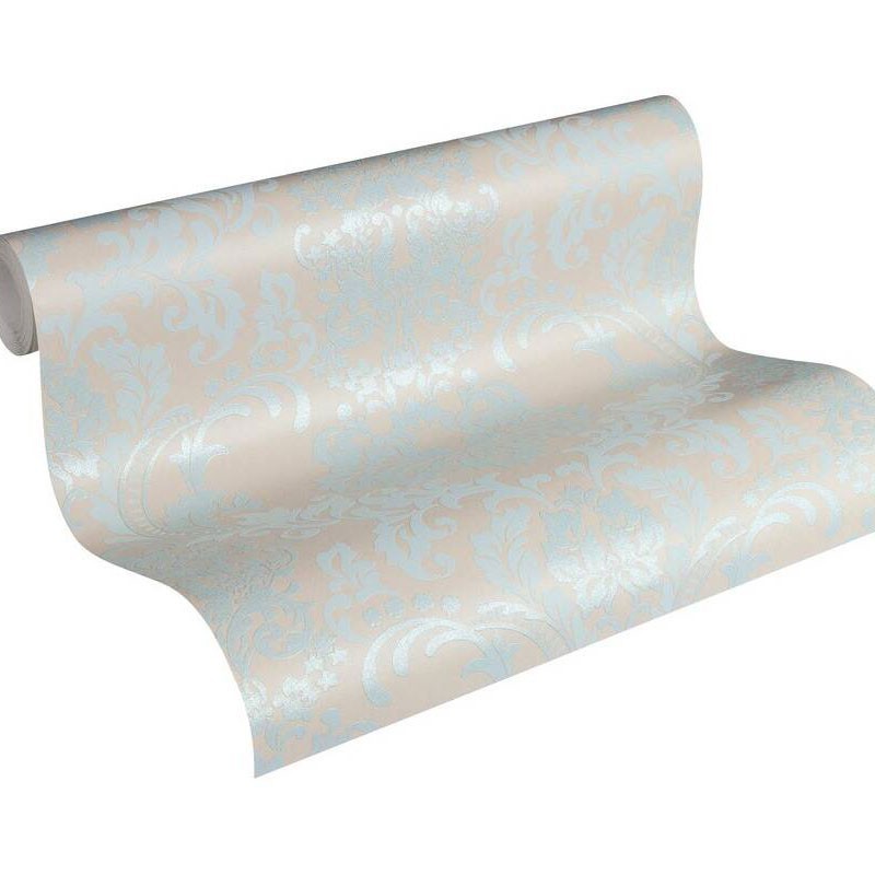 Diseño pensado para ambientes acogedores y contemporáneos. Papel pintado estilo damasco o barroco blanco efecto brillo As Creation Neue Bude 361661.