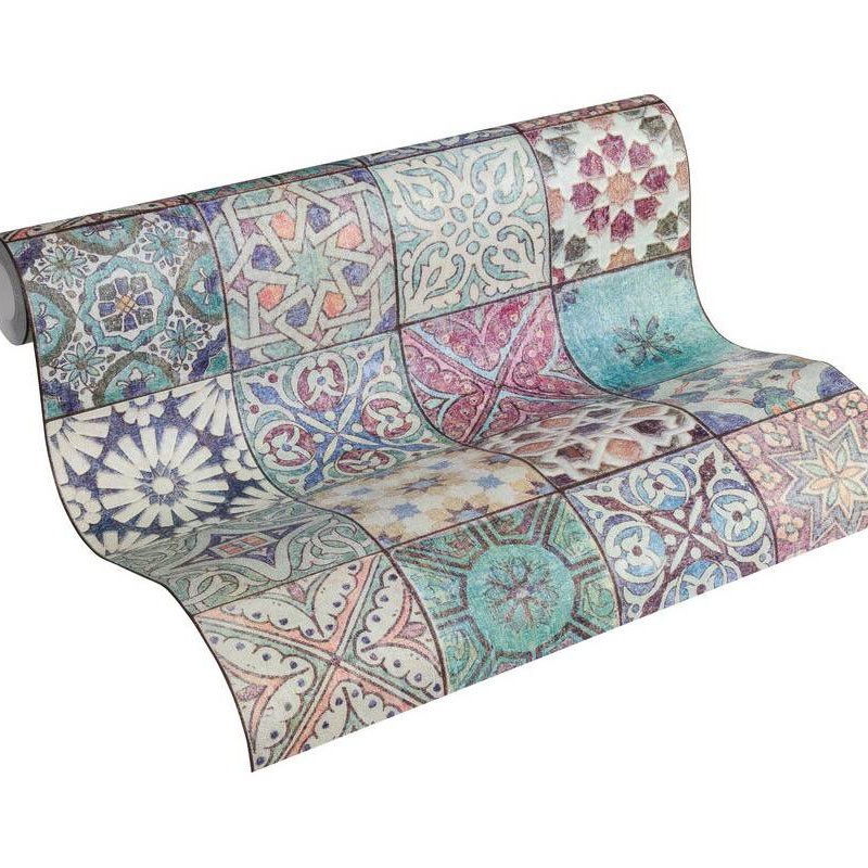 Diseño pensado para ambientes acogedores y contemporáneos.. Papel pintado azulejo hidráulico multicolor As Creation Neue Bude 362051.