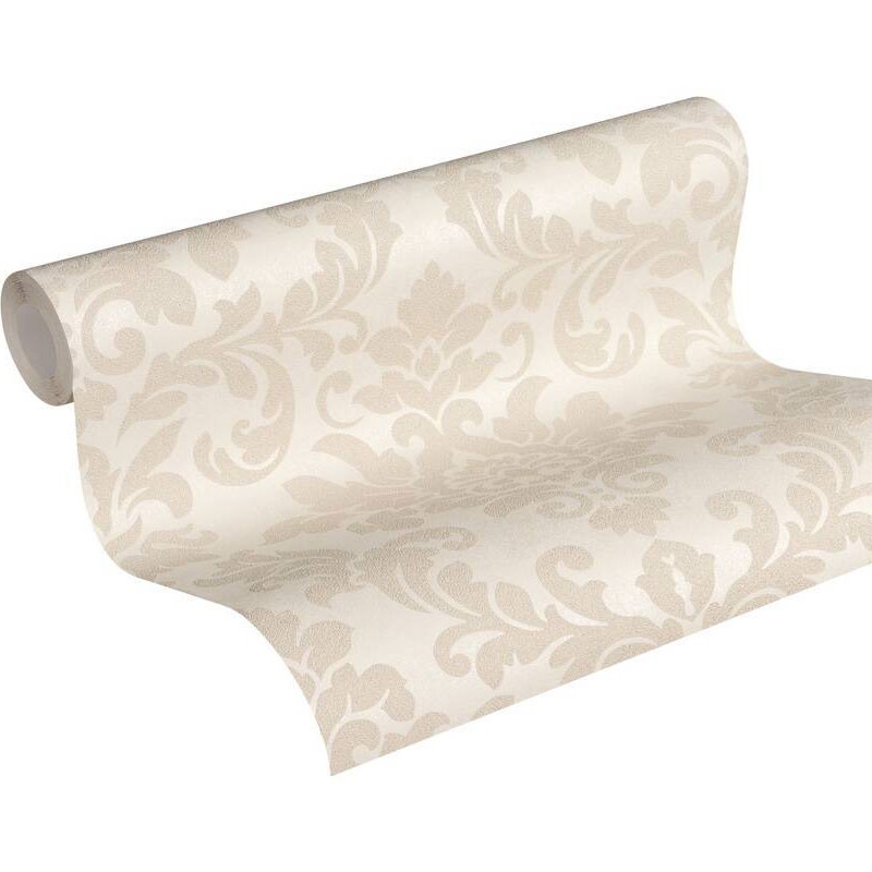 Diseño pensado para ambientes acogedores y contemporáneos.. Papel pintado damasco blanco y beige moderno metazalido As Creation Trendwalls 372703.