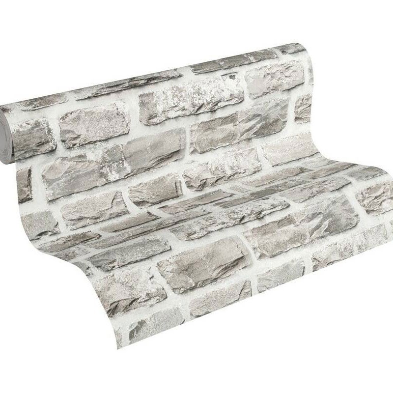 Inspirado en la decoración actual, destaca por su autenticidad.. Papel pintado piedra pizarra rústico gris y beige As Creation Metropolitan Stories 388162.
