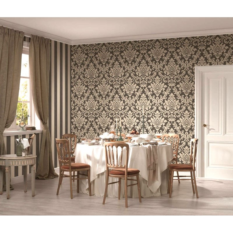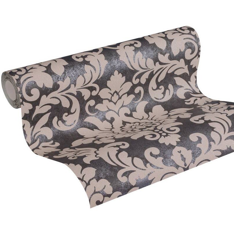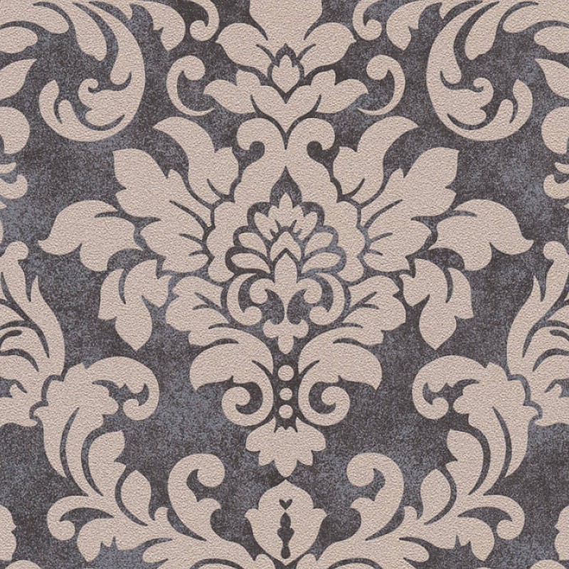 Papel pintado damasco negro moderno metalizado. Perfecto si buscas estilo clásico con toque moderno. Papeldecor 220-3797