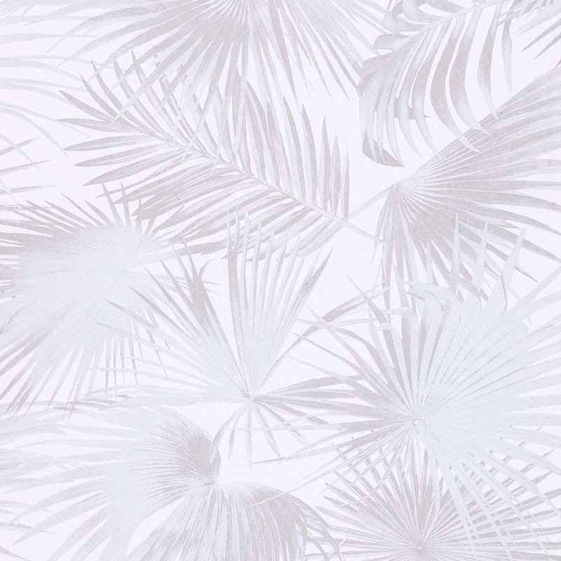 Papel Pintado hojas de palmera gris perla con un moderno brillo de Khroma, colección Wild. Calidad tejido no-tejido lavable, medidas: 53 cm x 10 m.