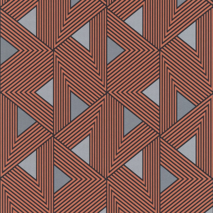 Papel Pintado geométrico naranja y plata metalizado estilo moderno de Khroma, colección Wild. Calidad tejido no-tejido lavable, medidas: 53 cm x 10 m.