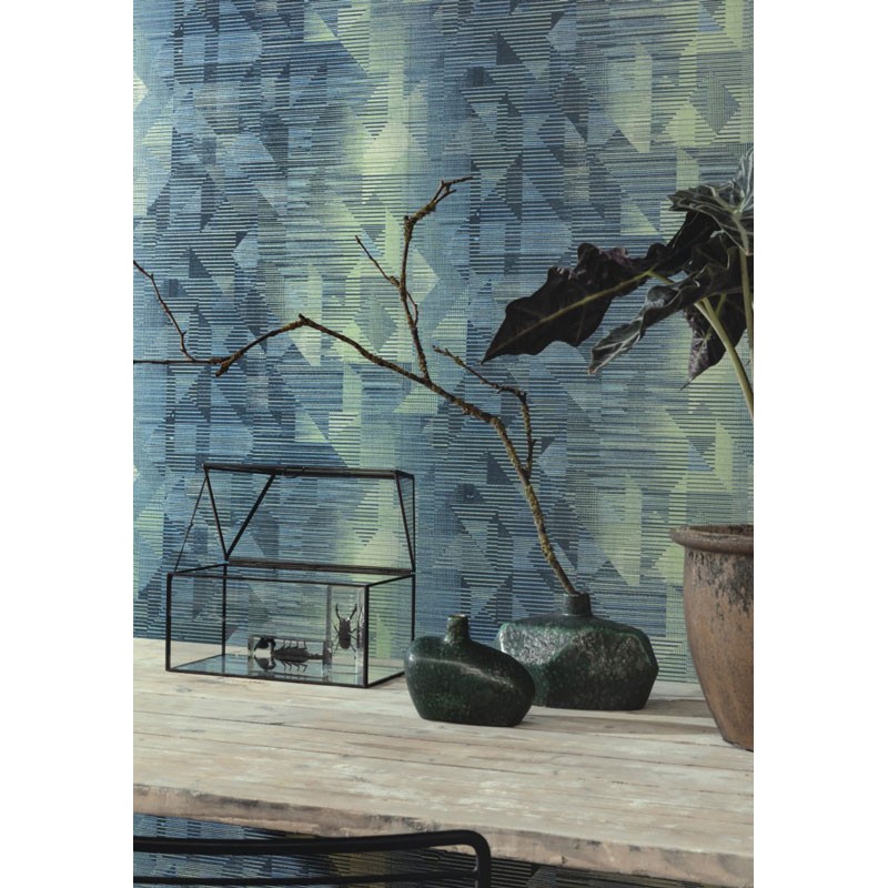 Papel Pintado moderno combinación de patrones geométricos azules y verdes de Khroma, colección Wild. Calidad tejido no-tejido lavable, medidas: 53 cm x 10 m.
