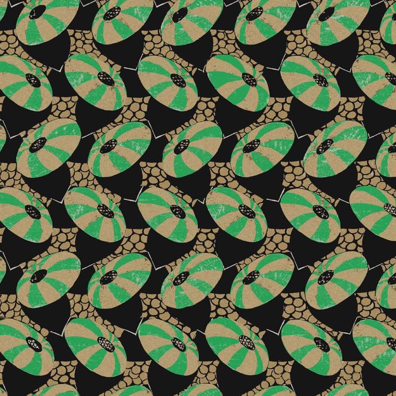 Papel Pintado geométrico colorido en estilo retro verde esmeralda de Khroma, colección Folies. Calidad tejido no-tejido lavable, medidas: 70 cm x 10 m.