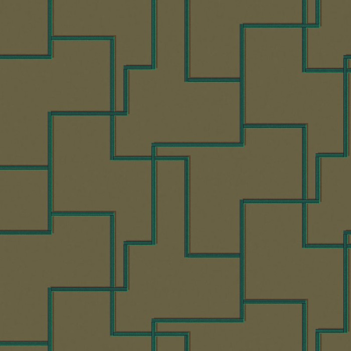 Papel Pintado gráficos geométricos forma de laberinto y brillo metalizado de Khroma, colección Folies. Calidad tejido no-tejido lavable, medidas: 70 cm x 10 m.