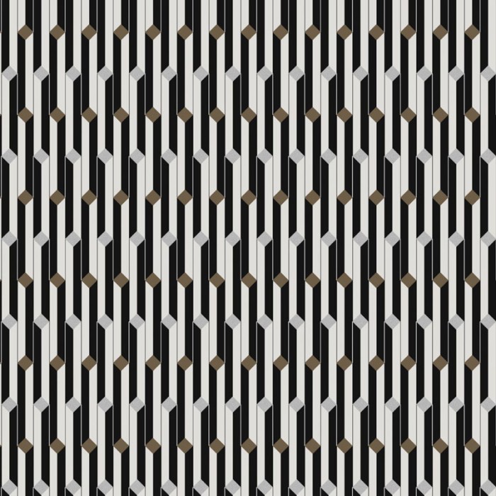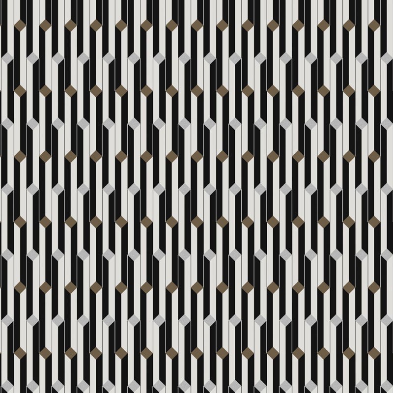 Papel Pintado Art-deco geométrico con cubos grises y marrón de Khroma, colección Folies. Calidad tejido no-tejido lavable, medidas: 70 cm x 10 m.