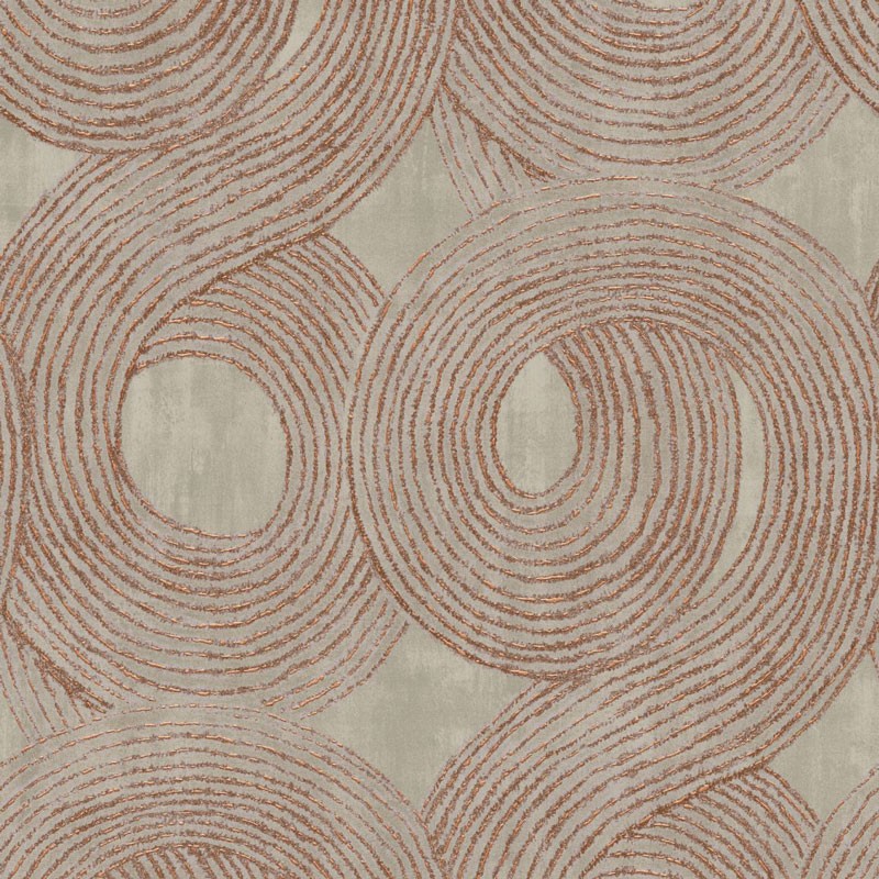 Papel Pintado patrones con formas de onda color piedra y cobre de Khroma, colección Tribute. Calidad tejido no-tejido lavable, medidas: 53 cm x 10 m.