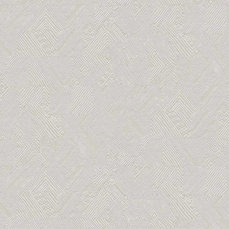 Papel Pintado estilo étnico patrones geométricos tribales perla crema de Khroma, colección Tribute. Calidad tejido no-tejido lavable, medidas: 53 cm x 10 m.