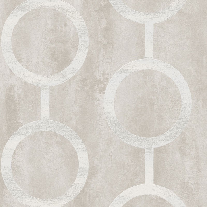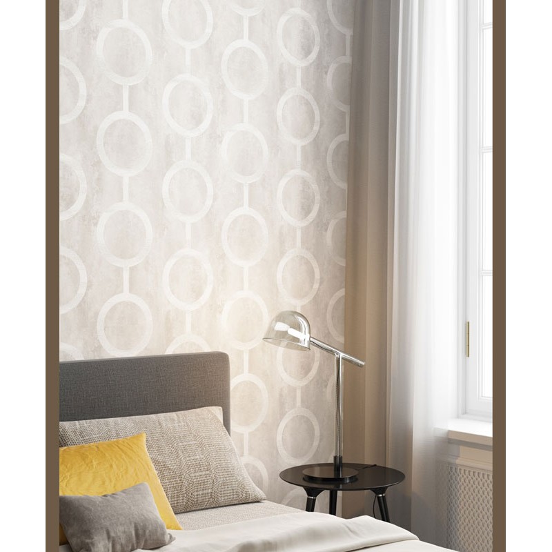 Papel Pintado piedra beige con eslabones blancos de Khroma, colección Prisma. Calidad tejido no-tejido lavable, medidas: 53 cm x 10 m.