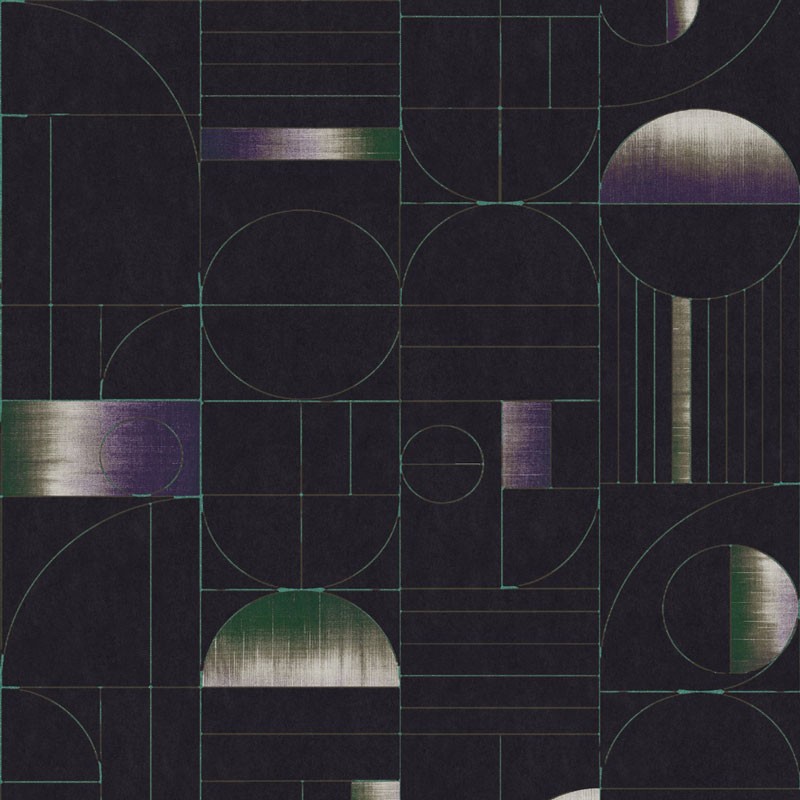 Papel Pintado formas arquitectónicas azul, verde y lila