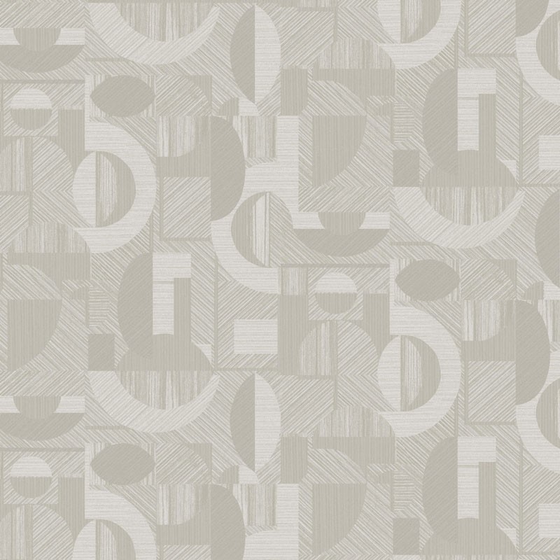 Papel Pintado gris con formas geométricas metalizadas de Khroma, colección Orbital. Calidad tejido no-tejido lavable, medidas: 53 cm x 10 m.