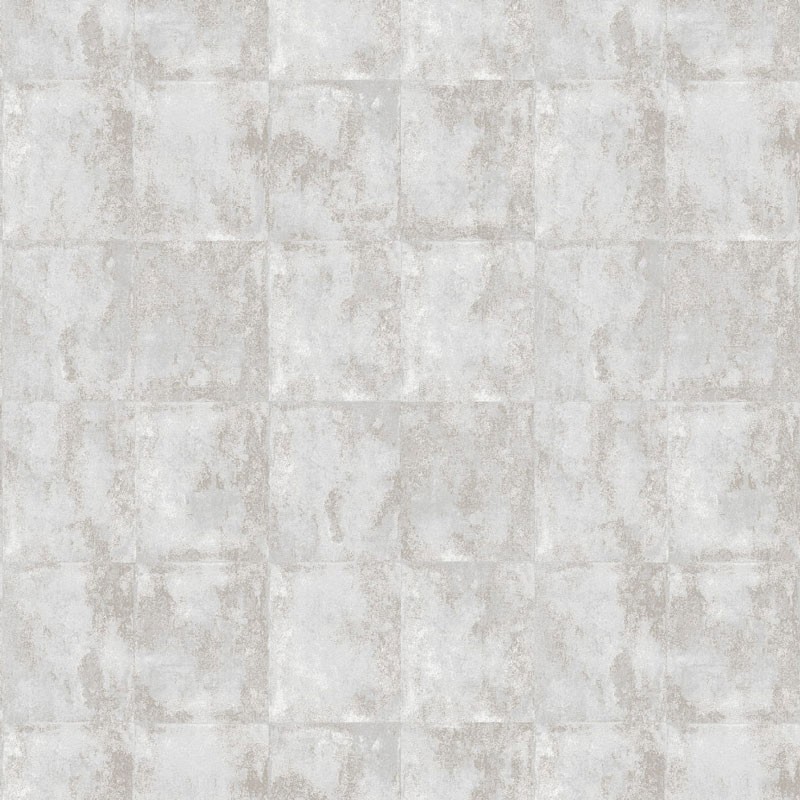 Papel Pintado efecto baldosas con parches de yeso blanco de Khroma, colección Orbital. Calidad tejido no-tejido lavable, medidas: 53 cm x 10 m.