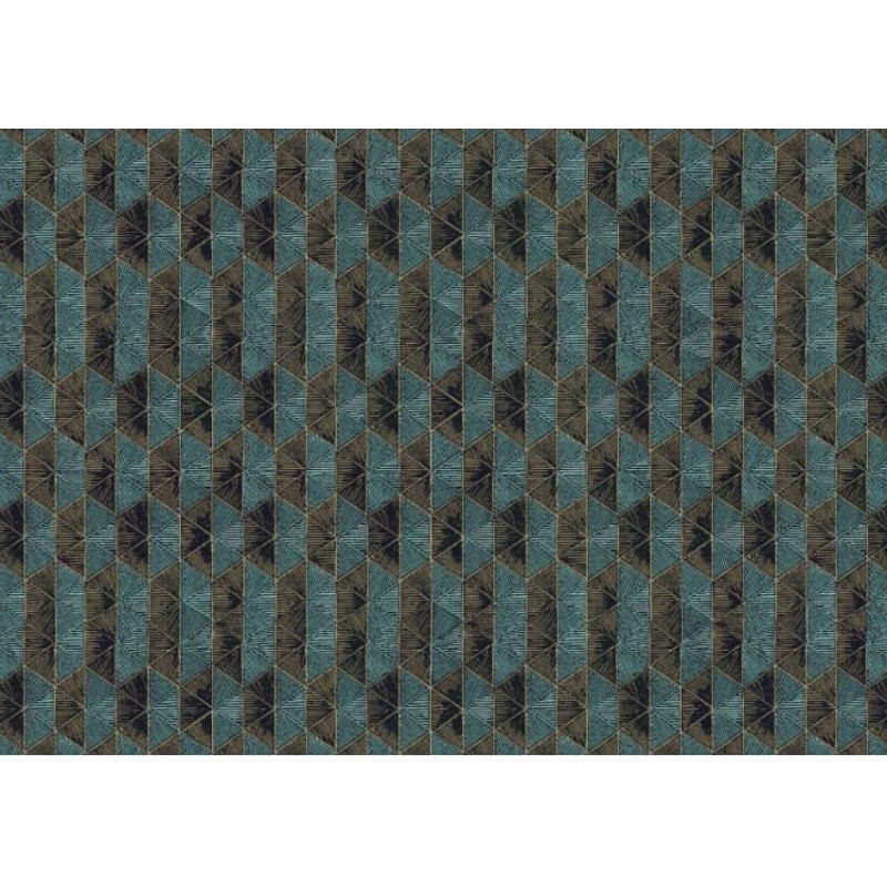 Papel Pintado mosaico geométrico marrón y turquesa de Khroma, colección Orbital. Calidad tejido no-tejido lavable, medidas: 53 cm x 10 m.