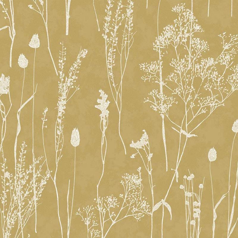 Papel pintado floral escandinavo marrón cobre de Eijffinger, colección Waterfront. Medidas: 52 cm x 10 m. Papel de pared tejido no tejido y lavable.