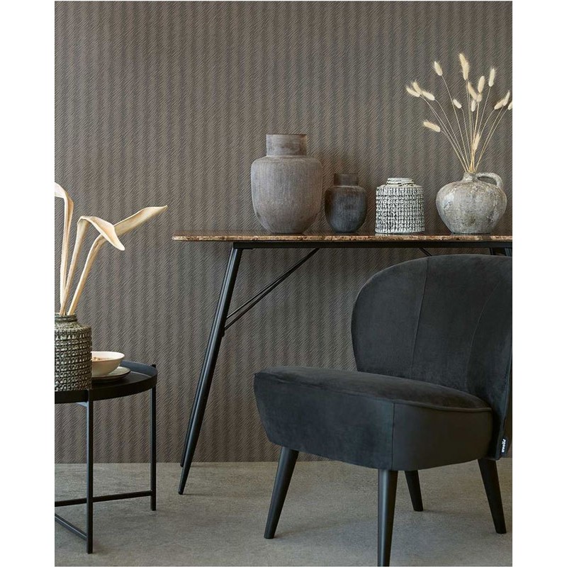 Papel pintado escandinavo marrón topo de Eijffinger, colección Waterfront. Medidas: 52 cm x 10 m. Papel de pared tejido no tejido y lavable.
