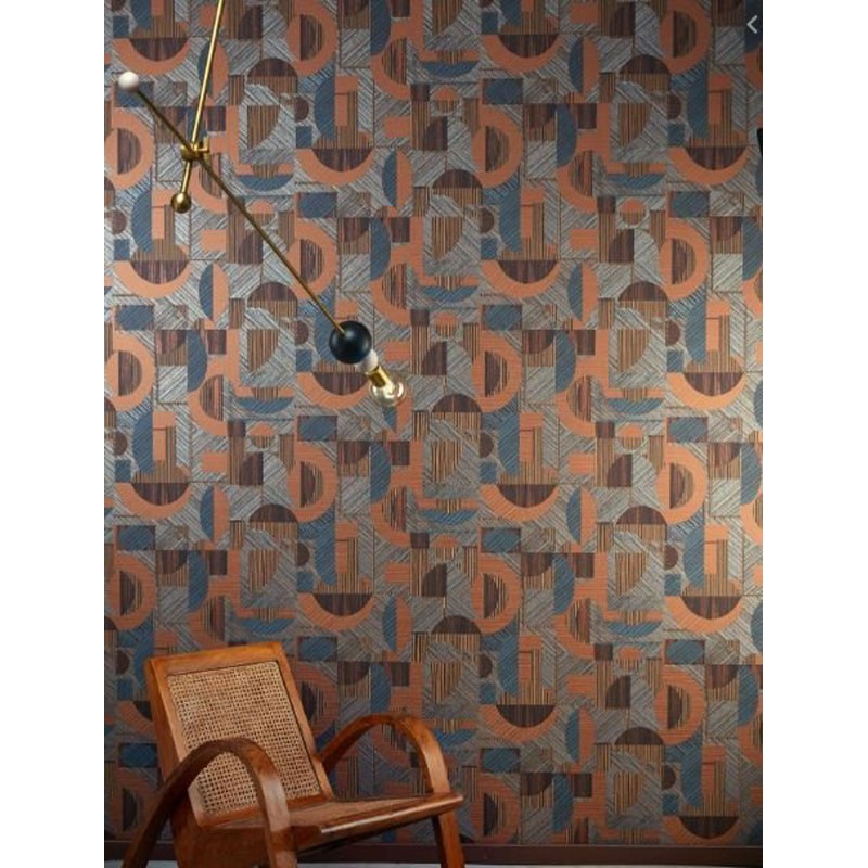 Papel pintado efecto tela teñida con motivos étnicos azul. Vendido por rollo, medidas: 52 cm x 10 metros