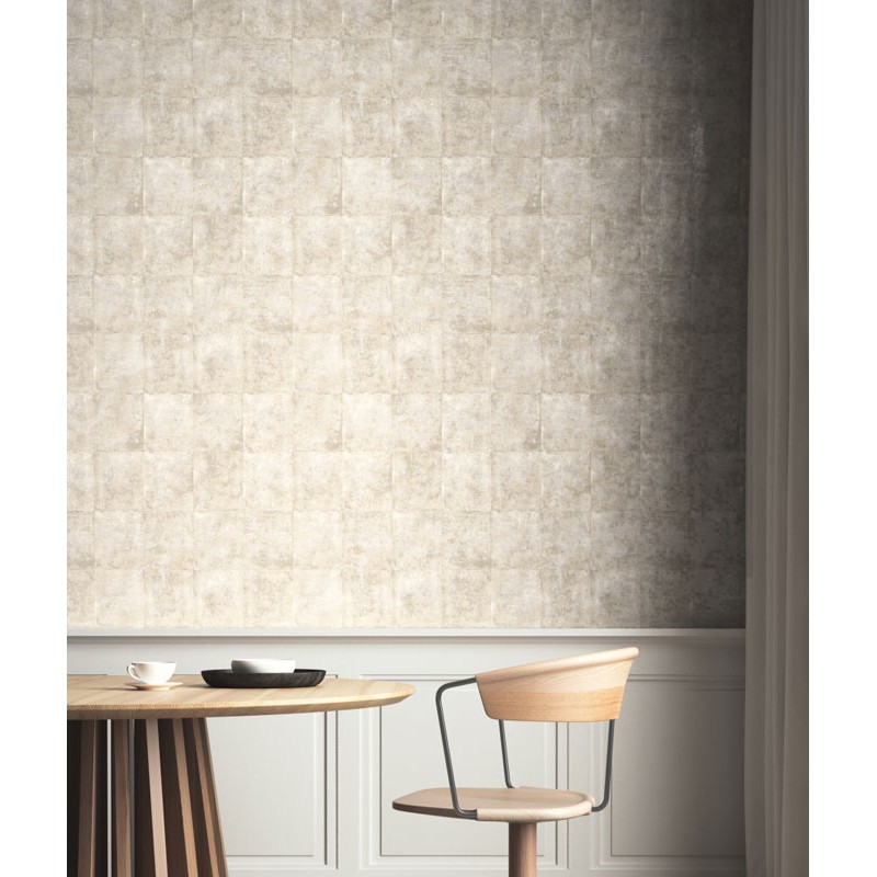 Papeldecor|Papel pintado efecto baldosas con parches de yeso blanco|Papel Pintado