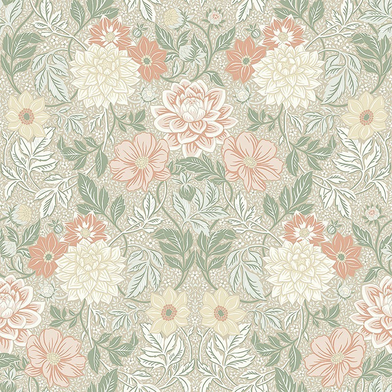 Papel pintado floral dalias multicolor