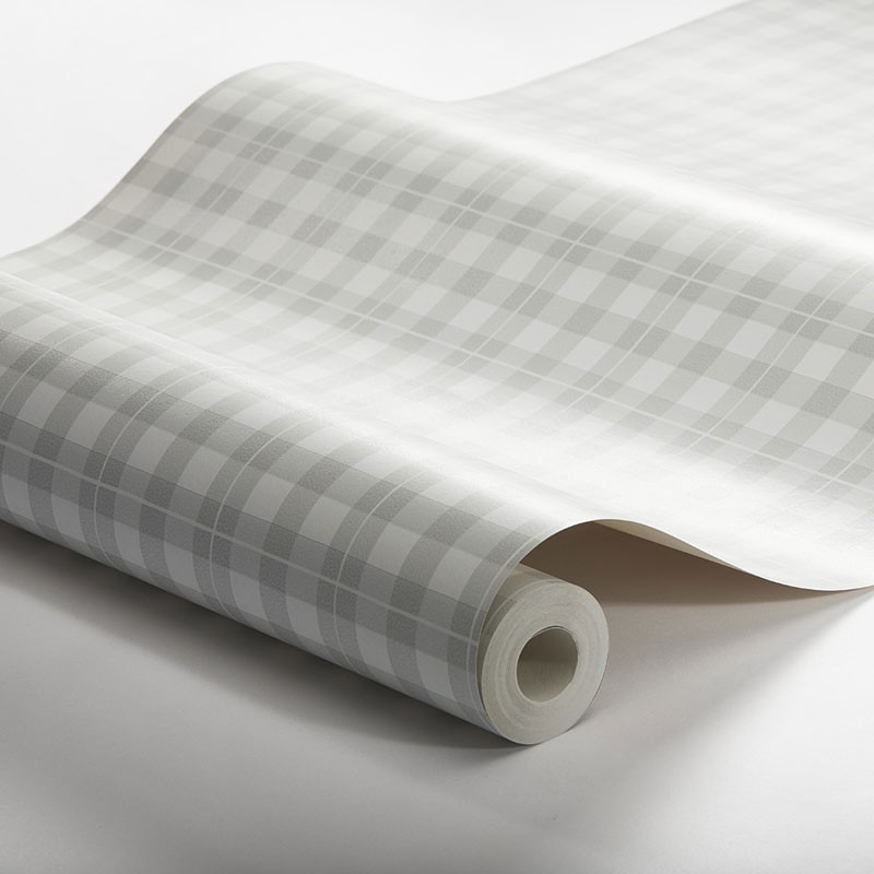 Papier peint carreaux vichy gris blanc
