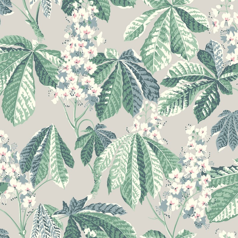 Papel pintado floral hojas castaño gris claro