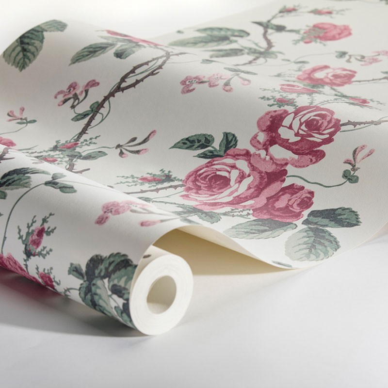 Papel pintado romántico rosas francesas