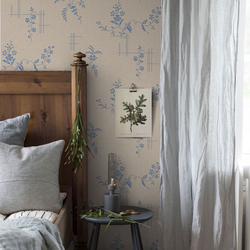 Papel pintado Art Deco geométrico floral de Borastapeter, colección Anno. Calidad tejido no-tejido lavable, medidas: 53 cm x 10 m.