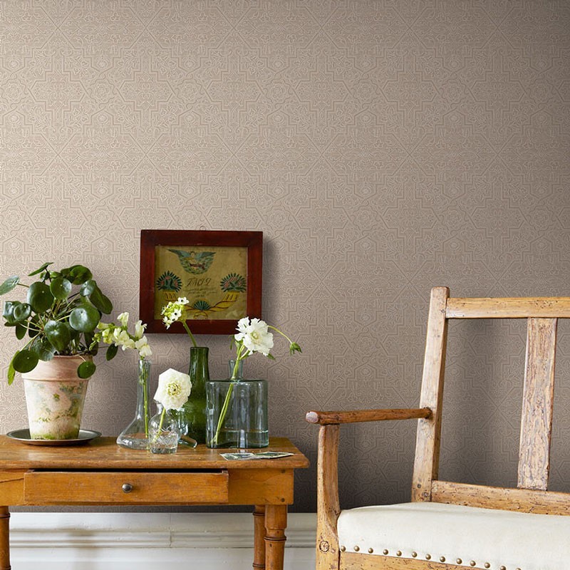 Papel pintado nórdico renacentista tostados de Borastapeter, colección Anno. Calidad tejido no-tejido lavable, medidas: 53 cm x 10 m.