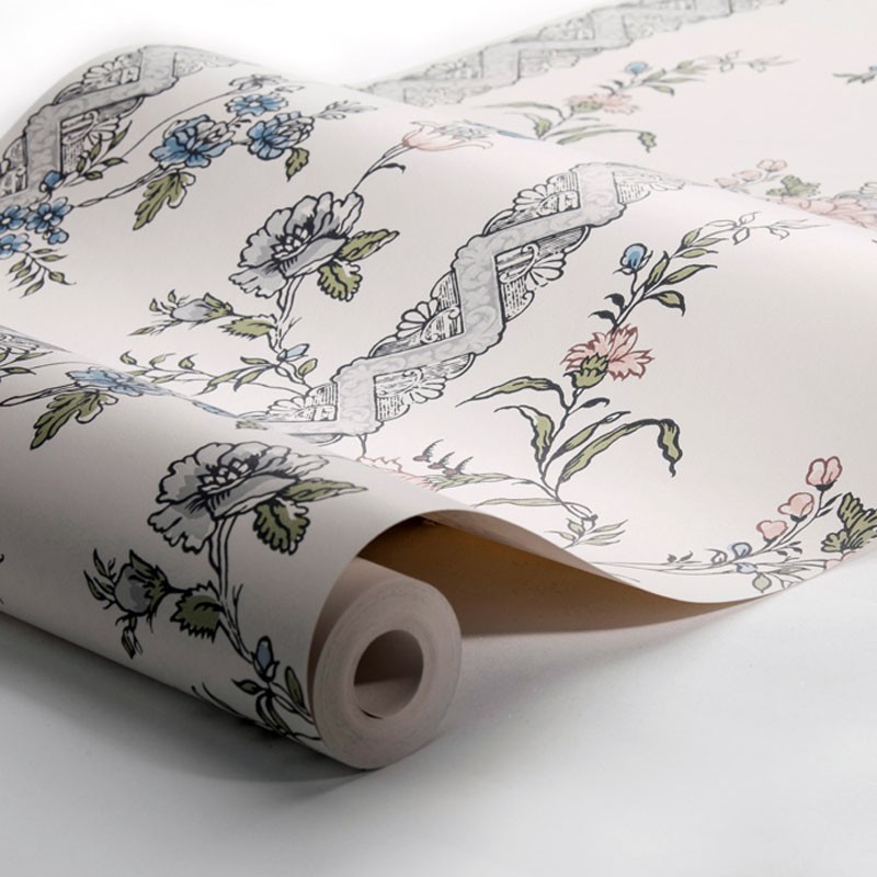 Papel pintado rococó flores pintadas mano de Borastapeter, colección Anno. Calidad tejido no-tejido lavable, medidas: 53 cm x 10 m.