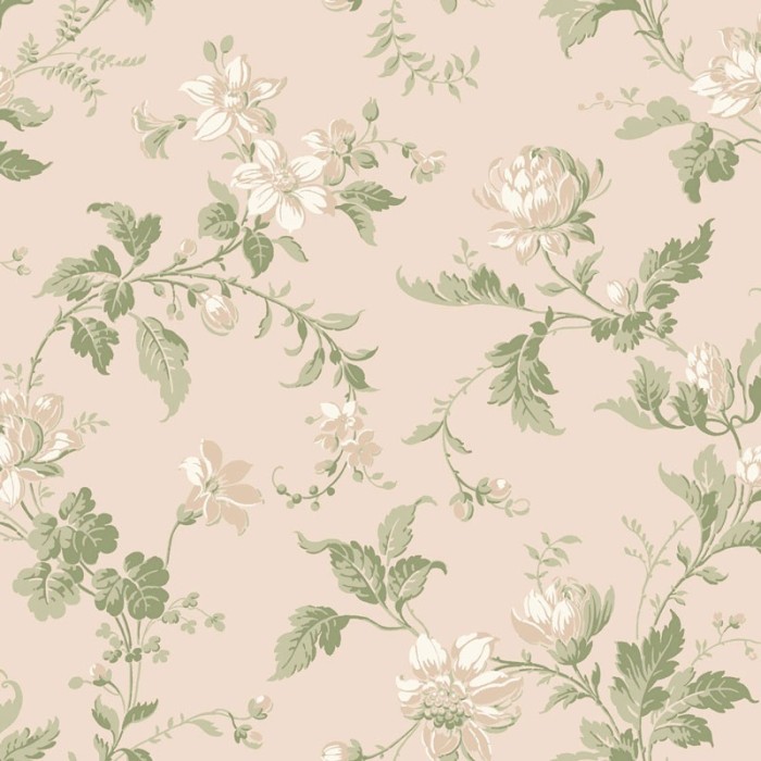 Papel pintado flores rosa blanco verde cremoso de Borastapeter, colección Anno. Calidad tejido no-tejido lavable, medidas: 53 cm x 10 m.