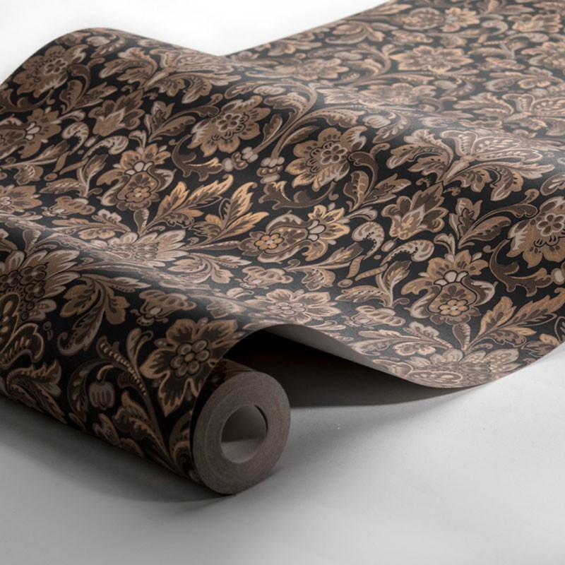 Papel pintado ornamental rojo vino dorado de Borastapeter, colección Anno. Calidad tejido no-tejido lavable, medidas: 53 cm x 10 m.