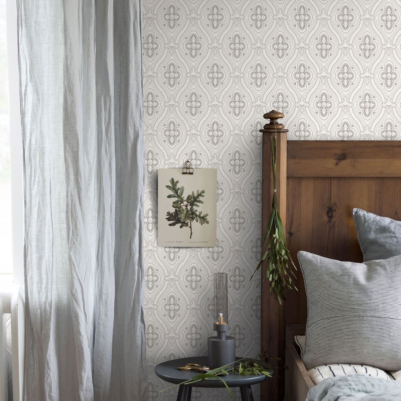 Papel pintado nórdico gris claro blanco negro de Borastapeter, colección Anno. Calidad tejido no-tejido lavable, medidas: 53 cm x 10 m.