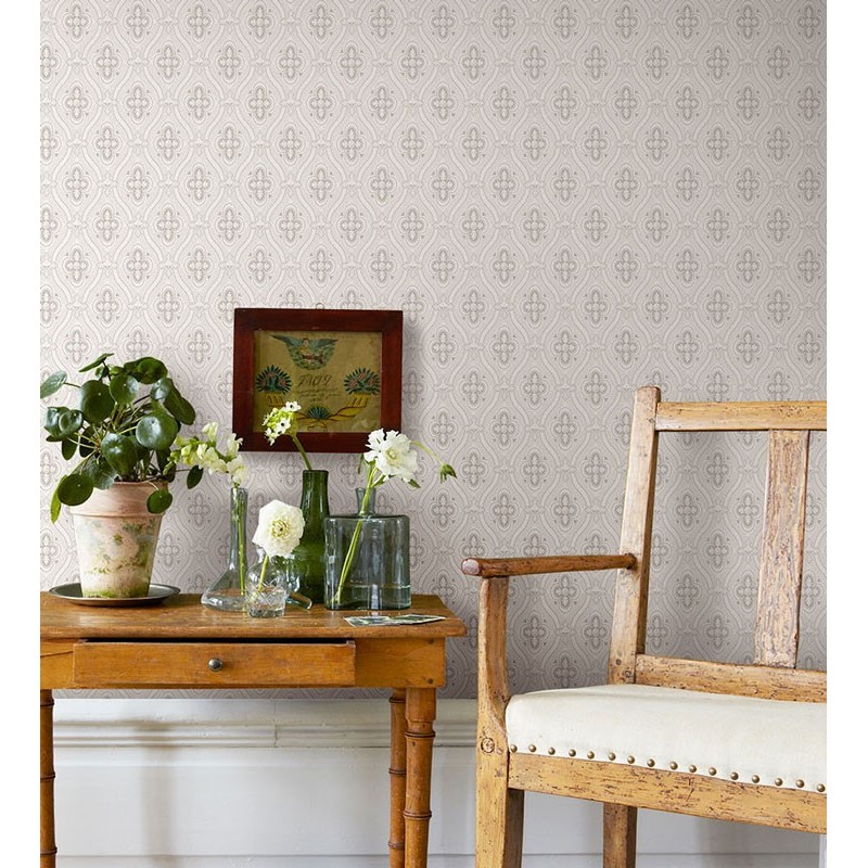 Papel pintado clásico escandinavo beige azul de Borastapeter, colección Anno. Calidad tejido no-tejido lavable, medidas: 53 cm x 10 m.