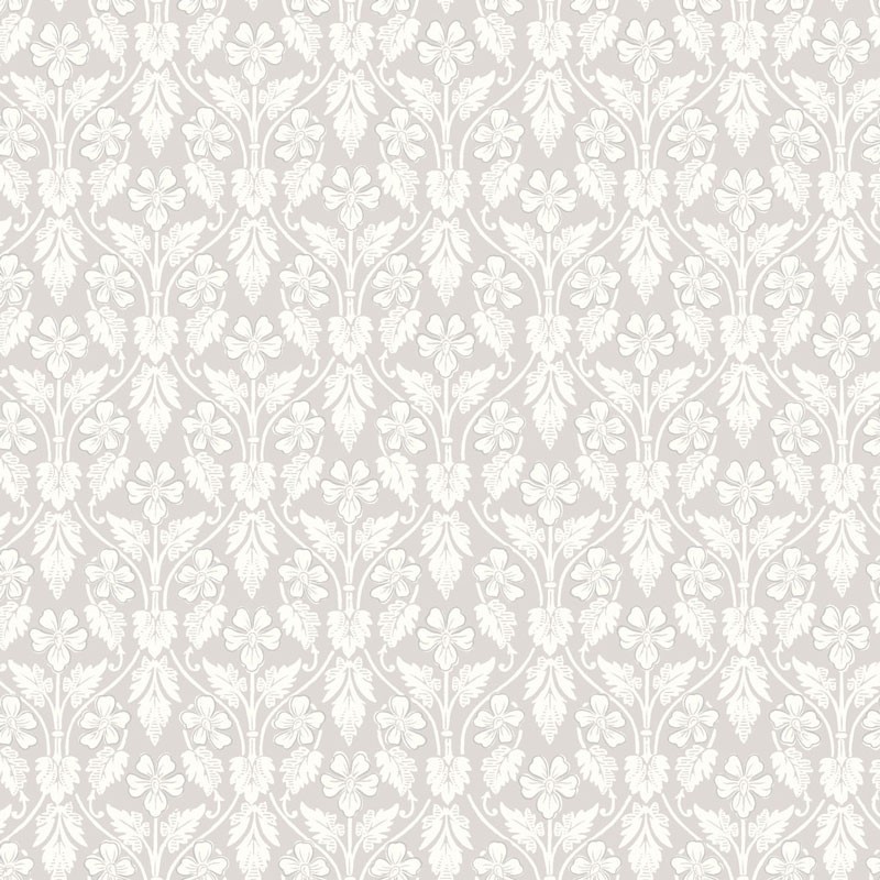 Papel pintado damasco gris claro blanco dorado de Borastapeter, colección Anno. Calidad tejido no-tejido lavable, medidas: 53 cm x 10 m.