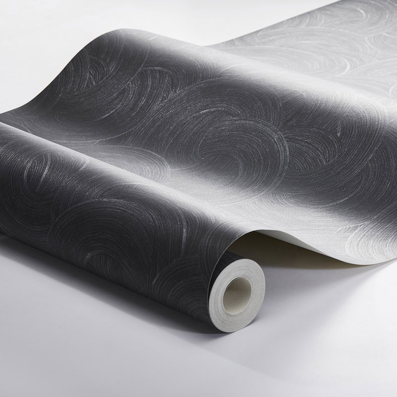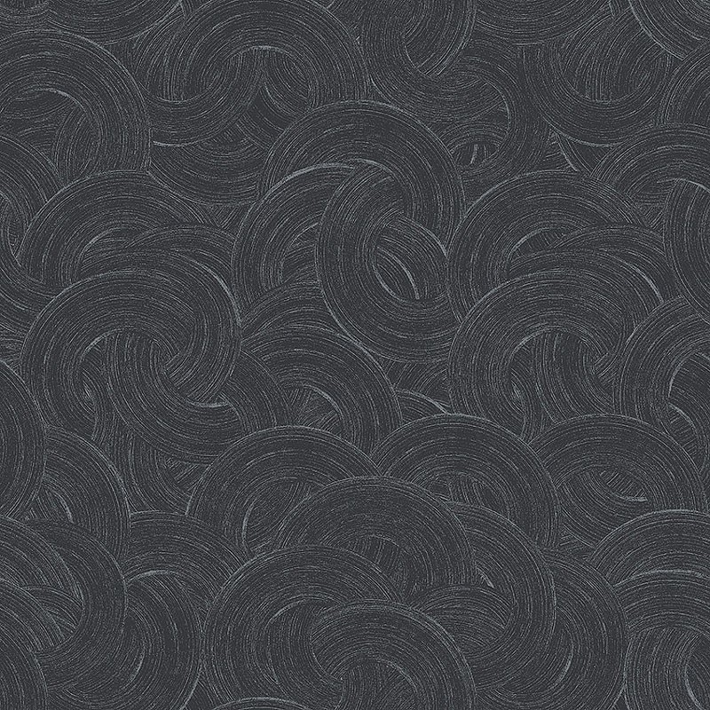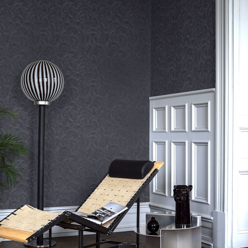 Papel pintado moderno remolinos azul medianoche plateado