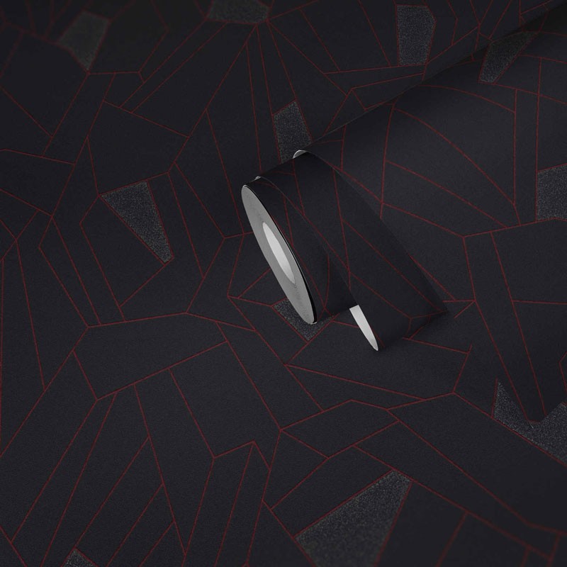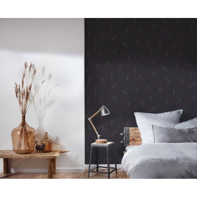 Papel Pintado moderno geométrico negro, detalle metalizado