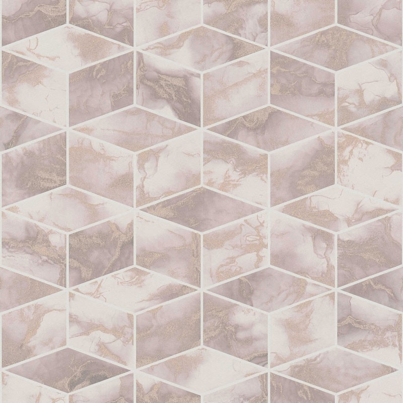 Ideal para transformar cualquier ambiente con encanto. Papel Pintado geométrico mármol rosado metalizado As Creation Metropolitan Stories 378632.