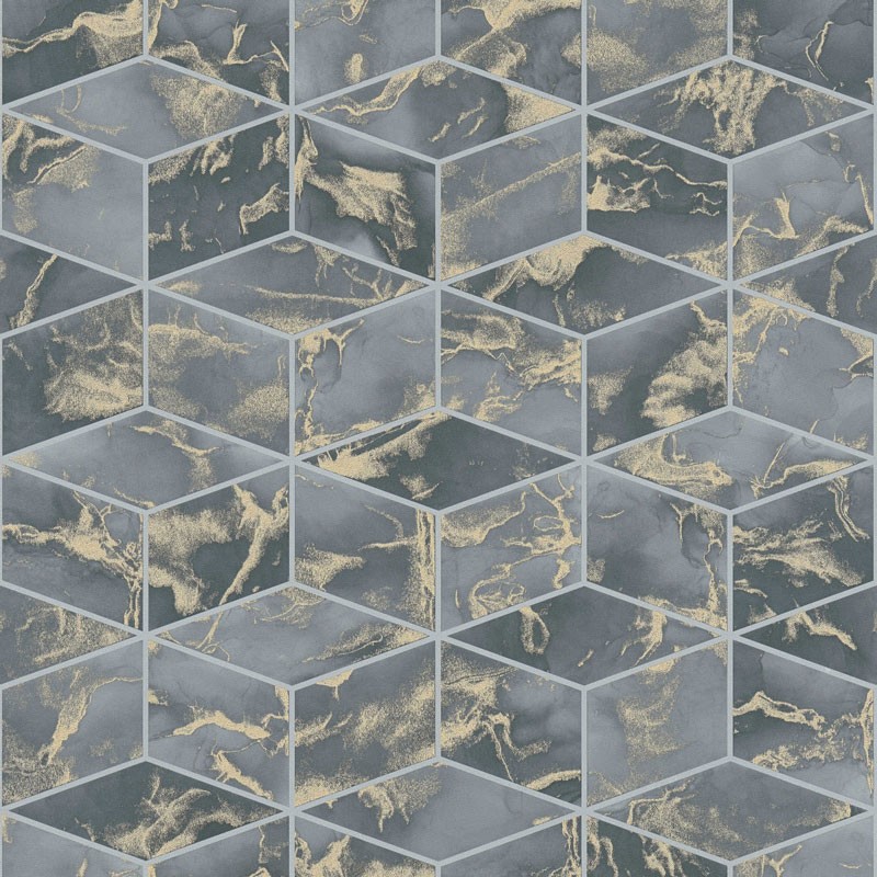 Diseño pensado para ambientes acogedores y contemporáneos. Papel Pintado imitando mármol gris, formas geométricas As Creation Metropolitan Stories 378634.