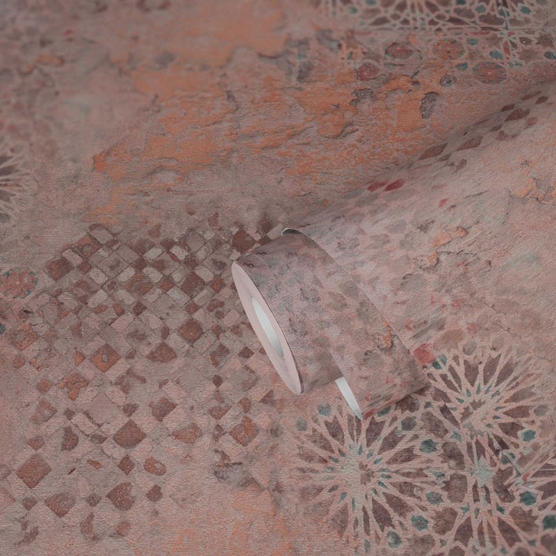 Papel Pintado tipo mosaico tonos salmón. Ideal para lograr estilo clásico y colores suaves. Papeldecor 221-1605