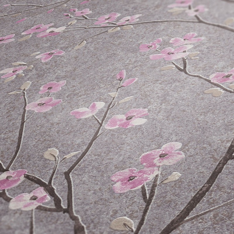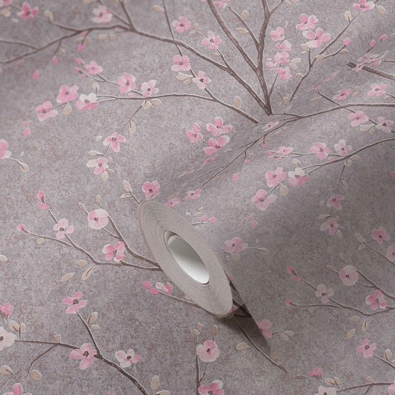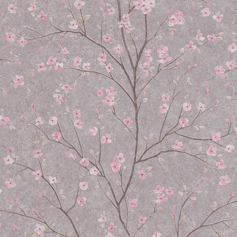 Papel Pintado cerezo gris claro rosa. Perfecto si buscas estilo oriental y paredes románticas. Papeldecor 221-1650