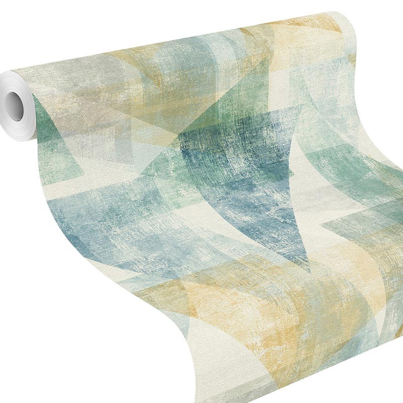 Papel pintado abstracto geométrico triángulos verdes