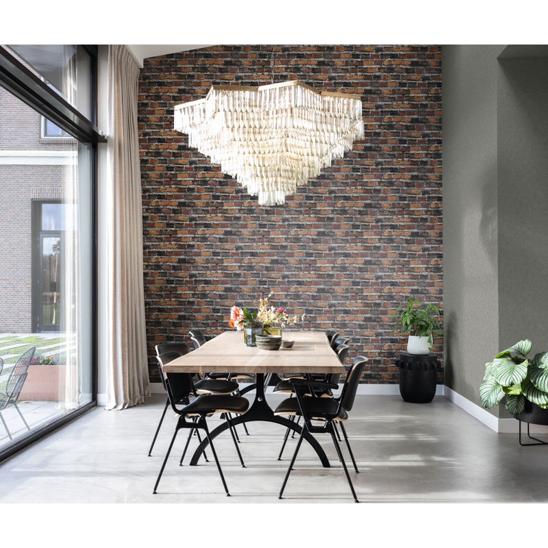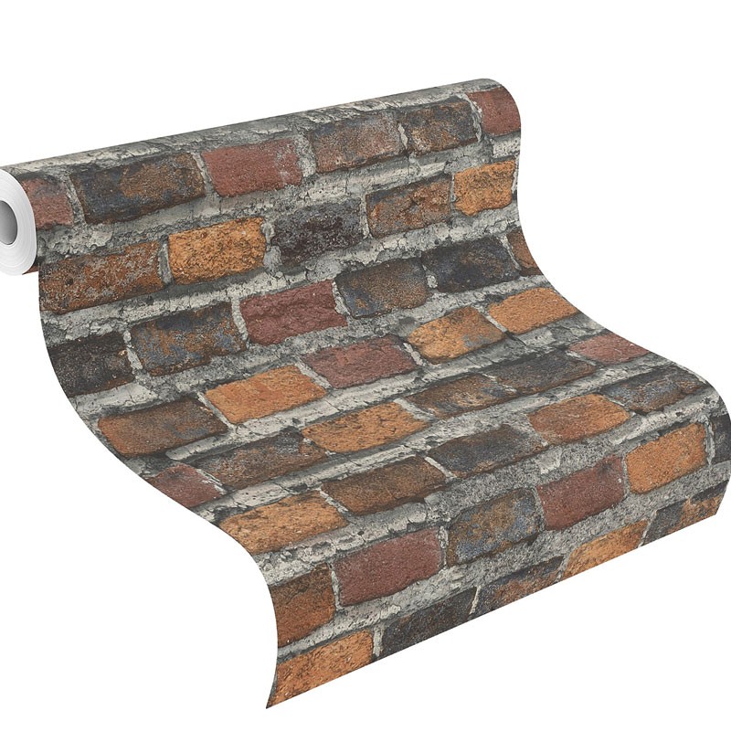 Este modelo de papel pintado ladrillo tonos marrón colores, ideal para transformar cualquier espacio con estilo. Papel Pintado Rasch Factory IV 428063.