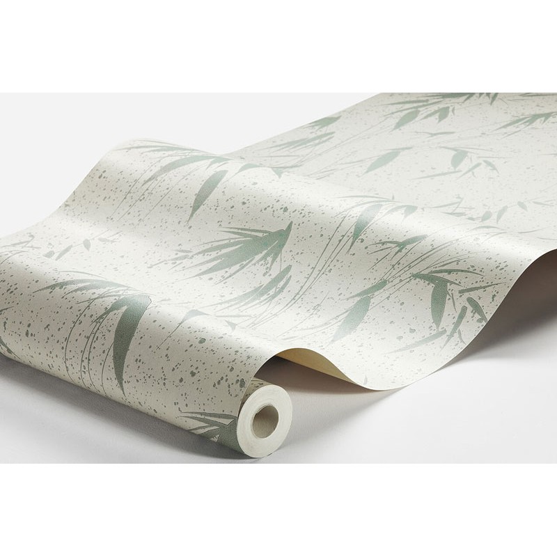 Papel pintado bambú japonés gris claro verde
