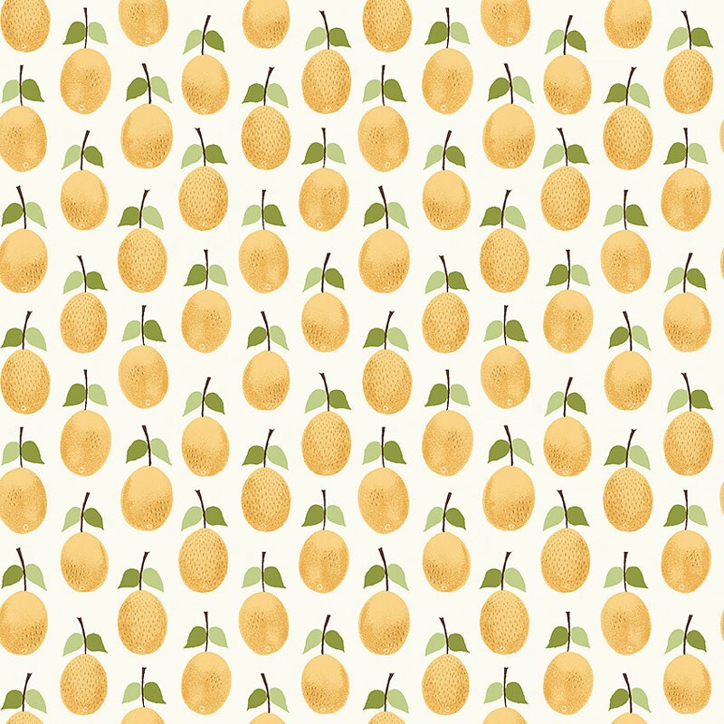 Papel pintado ciruelas estilizadas minimalista amarillo