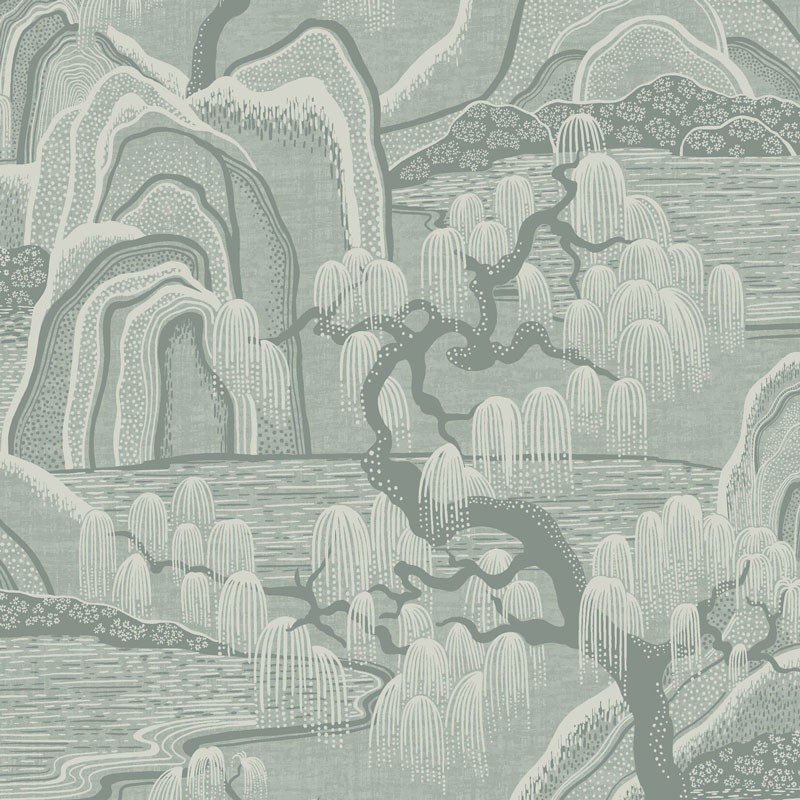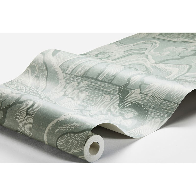 Papel pintado paisaje marino acuarelado beige y dorado de Casamance, colección Nuit D'orient. Calidad vinílico lavable, medidas: 68 cm x 10 m.