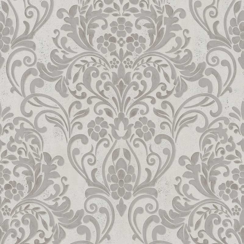 Papel pintado damasco gris metalizado efecto hormigón, con un efecto visual llamativo. Marburg City Glam 32602.