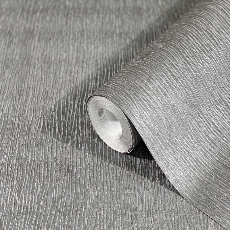 Ideal para ambientes sofisticados y actuales, papel pintado textura hormigón rayado gris metalizado Marburg City Glam 32621.