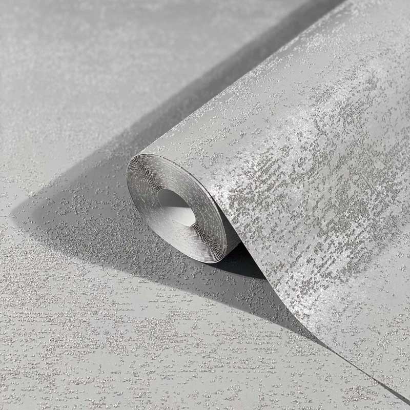 Papel pintado gris metalizado textura arenisca, ideal para destacar tus paredes. Marburg Dune 32508.