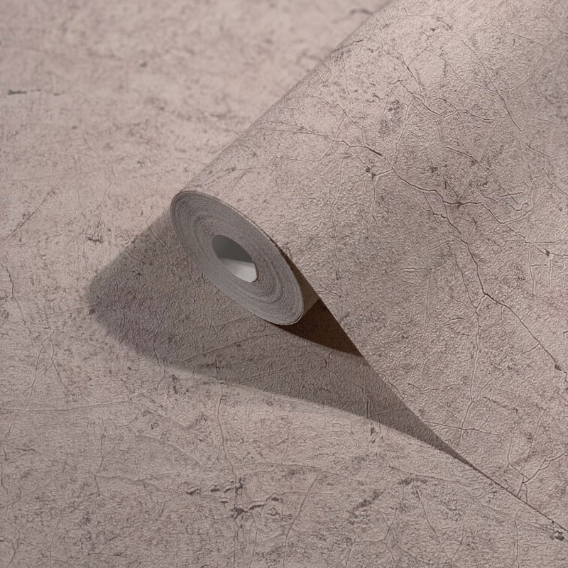 Papel pintado imitación yeso gris tirando beige, con un efecto visual llamativo. Marburg Vintage 32814.